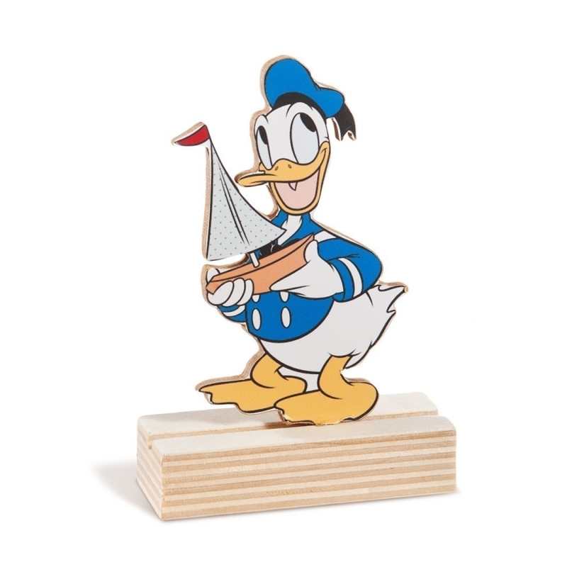 Ξύλινη βάση με κοπτικό.Η παράσταση απεικονίζει τον Donald να κρατάει ένα καραβάκι.