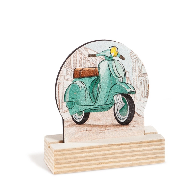 Ξύλινη βάση με κοπτικό.Η παράσταση απεικονίζει μια βεραμάν βέσπα.
