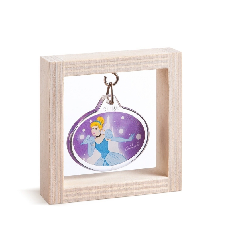Ξύλινο τετράγωνο καδράκι σε natural χρώμα.Το καδράκι είναι διακοσμημένο με την Cinderella.