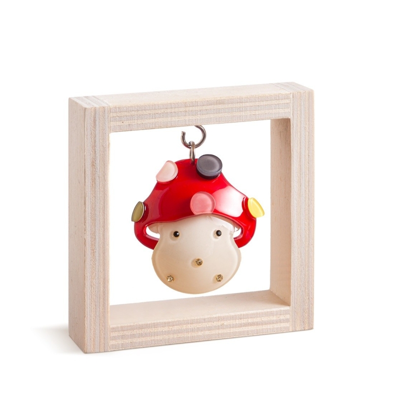 Ξύλινο τετράγωνο καδράκι σε natural χρώμα.Το καδράκι είναι διακοσμημένο με ένα μανιτάρι.
