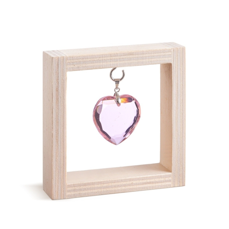 Ξύλινο τετράγωνο καδράκι σε natural χρώμα.Το καδράκι είναι διακοσμημένο με μια ροζ καρδιά.