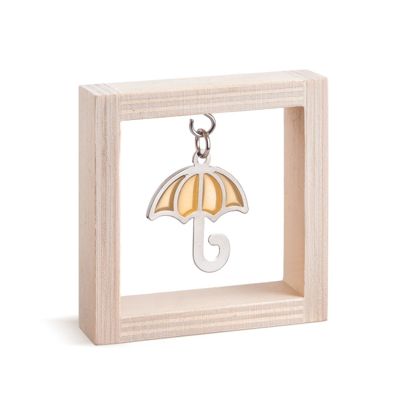 Ξύλινο τετράγωνο καδράκι σε natural χρώμα.Το καδράκι είναι διακοσμημένο με μια ομπρελίτσα.