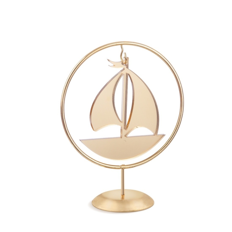 Μεταλλική βάση με χρυσό καράβι από καθρέφτη plexiglass.