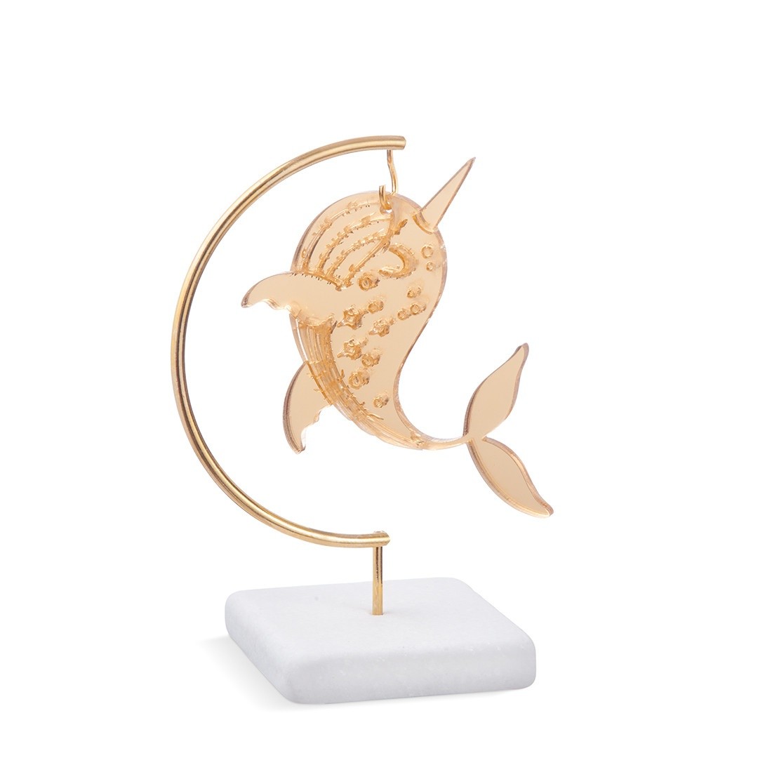 Γύψινη βάση με μεταλλικό κρίκο μισοφέγγαρο και χρυσή φάλαινα από καθρέφτη plexiglass.