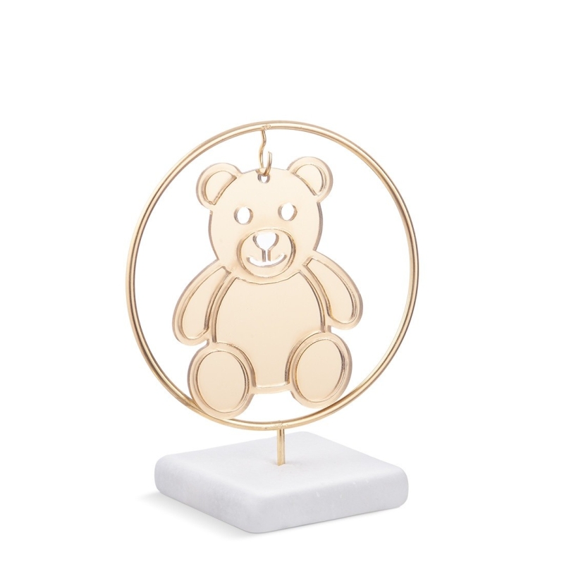 Γύψινη βάση με μεταλλικό κρίκο και χρυσό αρκουδάκι από καθρέφτη plexiglass.