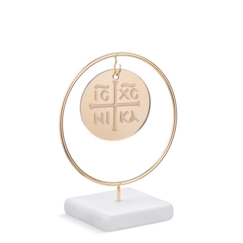 Γύψινη βάση με μεταλλικό κρίκο και χρυσό κωνσταντινάτο από καθρέφτη plexiglass.