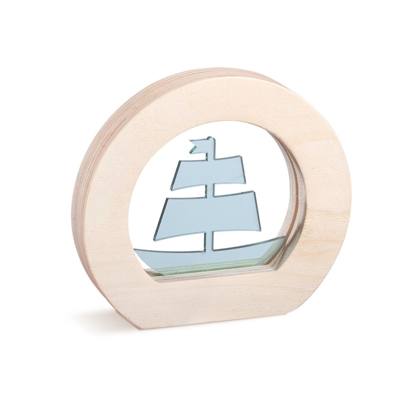 Ξύλινο καδράκι σε φυσικό χρώμα διακοσμημένο με βεραμάν διάφανο plexiglass κοπτικό καραβάκι.