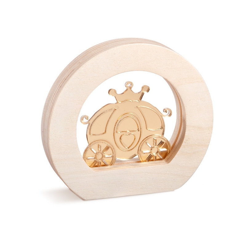 Ξύλινο καδράκι σε φυσικό χρώμα διακοσμημένο με χρυσό plexiglass-καθρέφτη κοπτικό άμαξα.