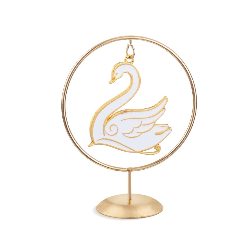 Μεταλλική βάση με κρεμαστό κύκνο σε χρυσό χρώμα με σμάλτο λευκό .
