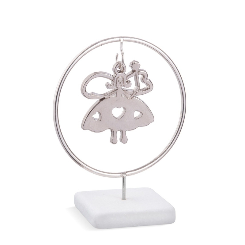 Επιτραπέζιο διακοσμητικό σύνθεση με διαφορετικά υλικά.Ο κωδικός αποτελείται από : 1) Γύψινη βάση 2)μεταλλικό κρίκο 3)μεταλλικό μοτίφ πριγκίπισσα σε ασημί χρώμα.