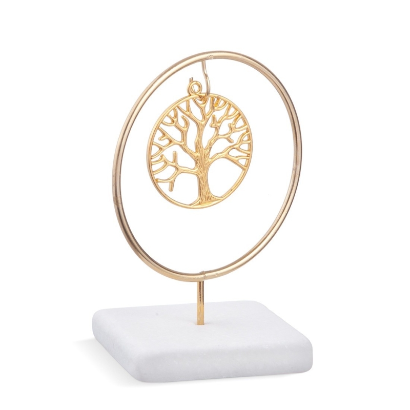 Επιτραπέζιο διακοσμητικό σύνθεση με διαφορετικά υλικά.Ο κωδικός αποτελείται από : 1) Γύψινη βάση 2)μεταλλικό κρίκο 3)μεταλλικό στρογγυλό δέντρο σε χρυσό χρώμα.