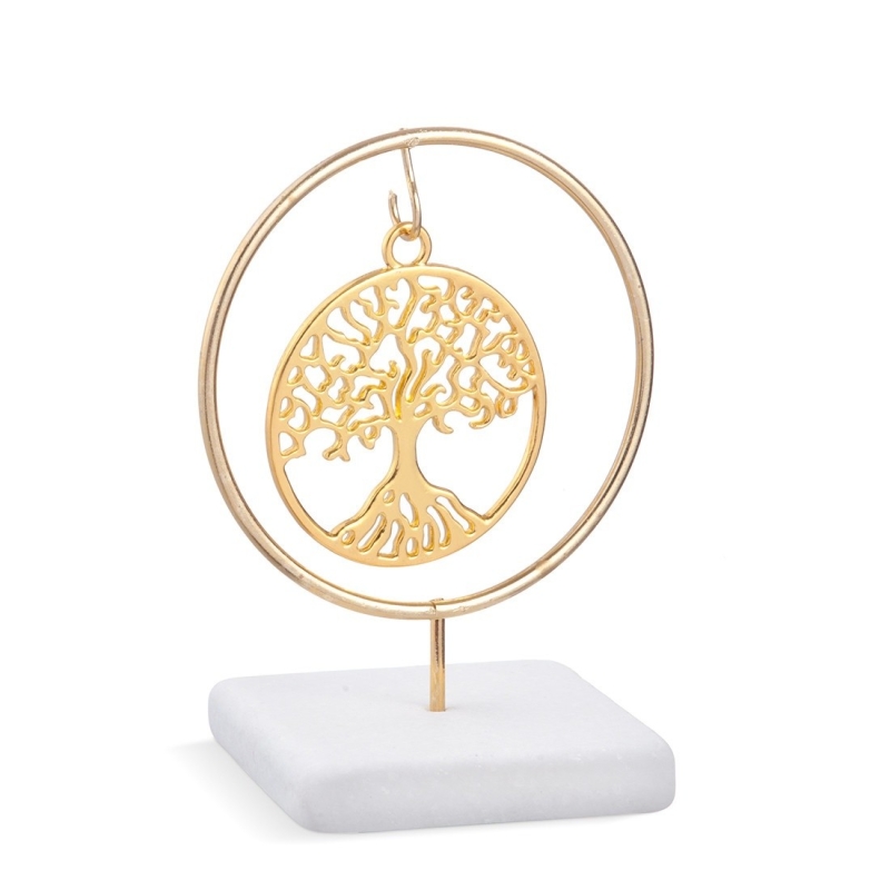 Επιτραπέζιο διακοσμητικό σύνθεση με διαφορετικά υλικά.Ο κωδικός αποτελείται από : 1) Γύψινη βάση 2)μεταλλικό κρίκο 3)μεταλλικό μοτίφ δέντρο σε χρυσό χρώμα.