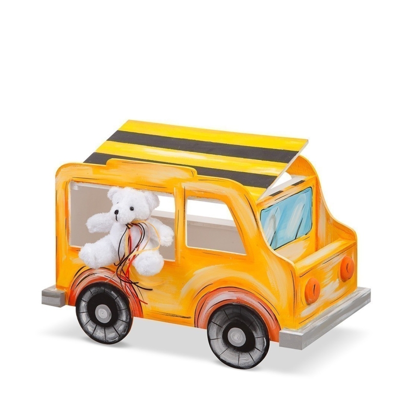 Under construction. Ξύλινο κουτί βαπτιστικών σε σχήμα οχήματος. Το κουτί είναι ζωγραφισμένο σε κίτρινο χρώμα και απεικονίζει έναν εκσκαφέα. Στο καπάκι είναι ζωγραφισμένη η δαγκάνα του εκσκαφέα.