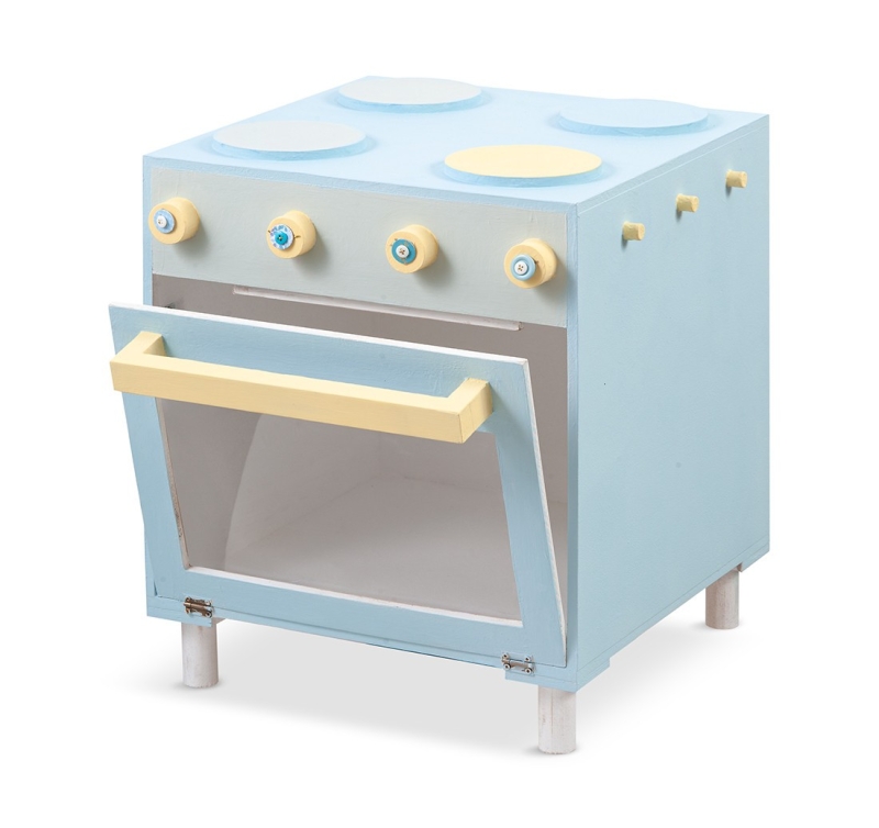 Baby Chef. Ξύλινο κουτί βαπτιστικών σε σχήμα κουζίνας. Το κουτί είναι βαμμένο σε σιέλ και κίτρινο χρώμα. Ιδανικό και για τη διακόσμηση κάθε παιδικού δωματίου.