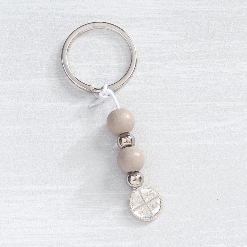 Μαρτυρικό μπρελόκ με κρεμαστό ασημί κωνσταντινάτο και ξύλινες λιλά χάντρες.