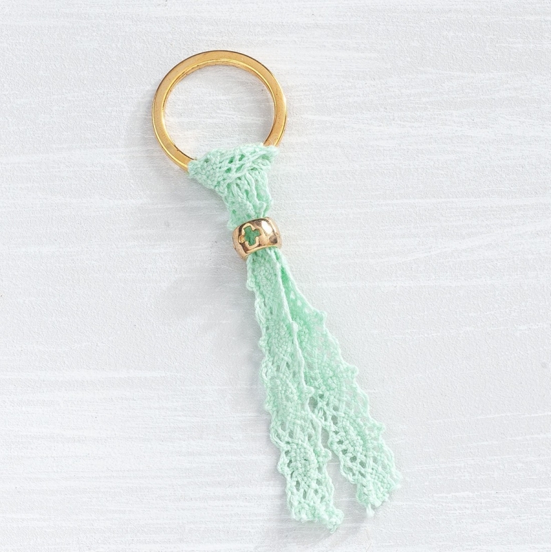 Μαρτυρικό μπρελόκ με δέσιμο σε σχήμα γραβάτας. Η κορδέλα είναι βαμβακερή βεραμάν τρέσσα και ο σταυρός χρυσό δαχτυλίδι.