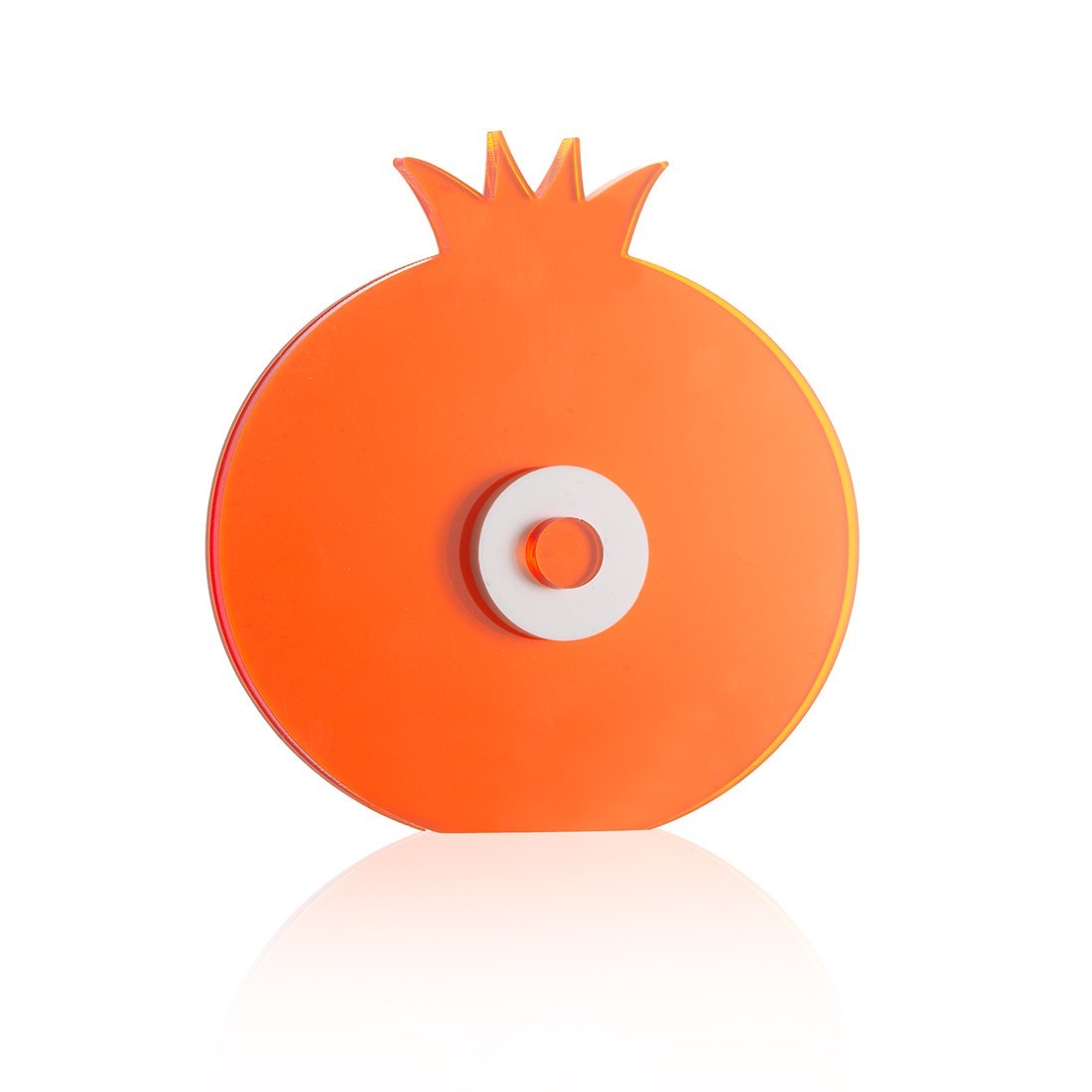Plexiglass στρογγυλό ρόδι με διπλή βάση από λευκό και διάφανο πορτοκαλί. Στη μέση είανι διακοσμημένο με στρογγυλό ματάκι σε λευκό πορτοκαλί.