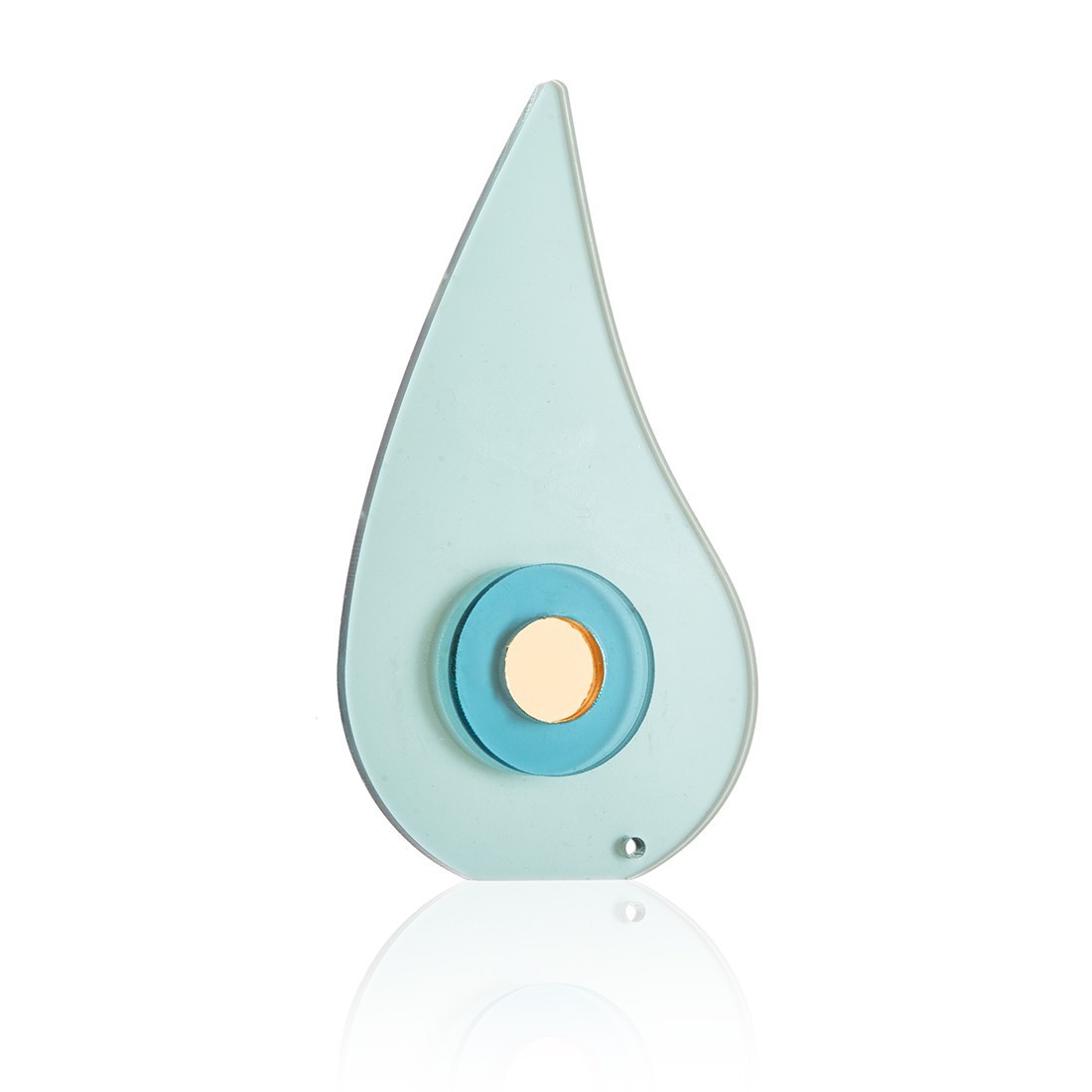 Plexiglass μάτι σε σχήμα δάκρυ. Η βάση είναι διάφανη βεραμάν και στη μέση είναι διακοσμημένο με στρογγυλό ματάκι σιέλ-λευκό.