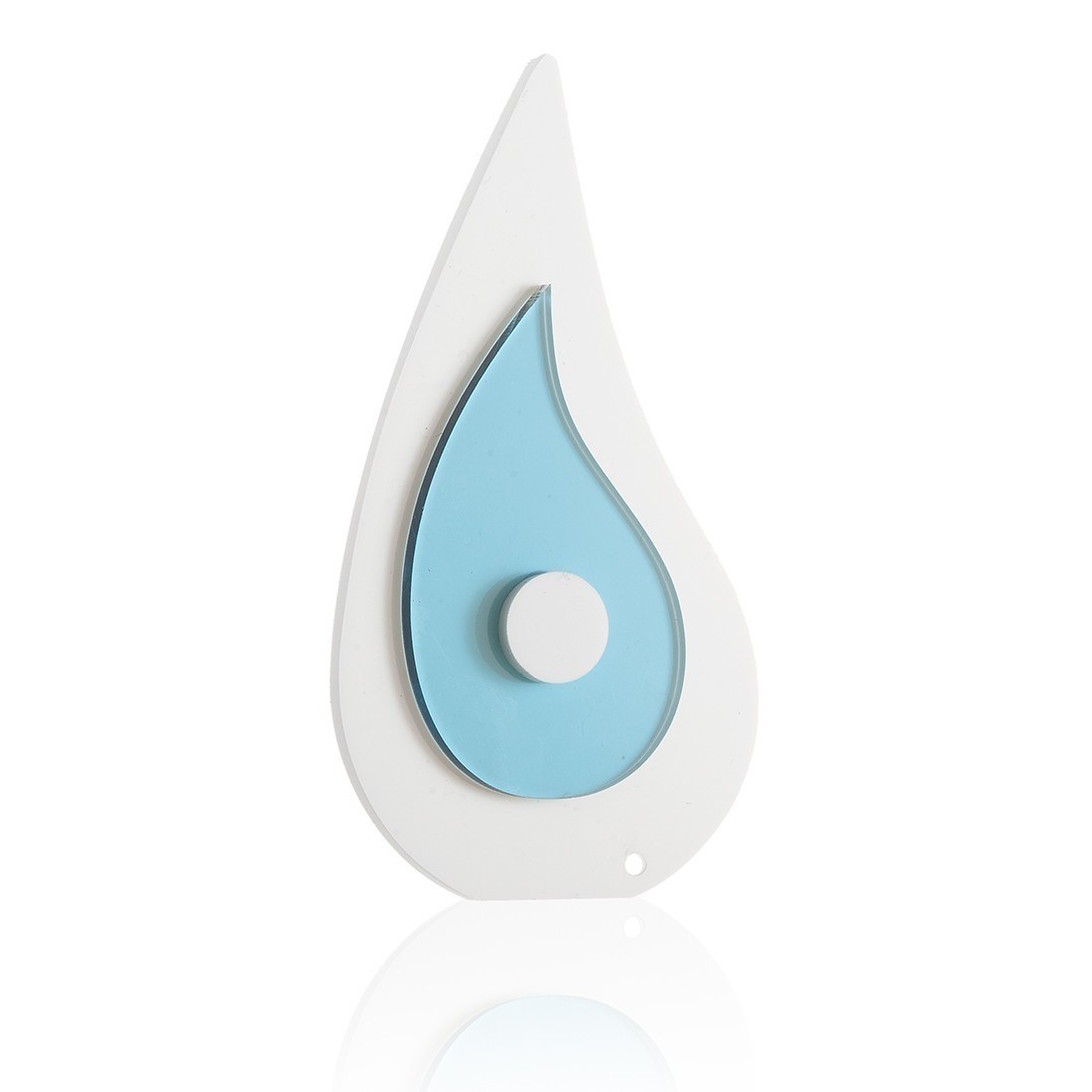 Plexiglass μάτι σε σχήμα δάκρυ. Η βάση είναι λευκή και το επάνω μέρος διάφανο σιέλ.