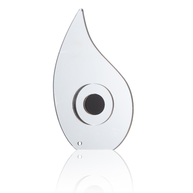 Plexiglass μάτι σε σχήμα σταγόνας από ασημί καθρέπτη. Στη μέση είναι διακοσμημένο με στρογγυλό ματάκι ασημί-μαύρο.
