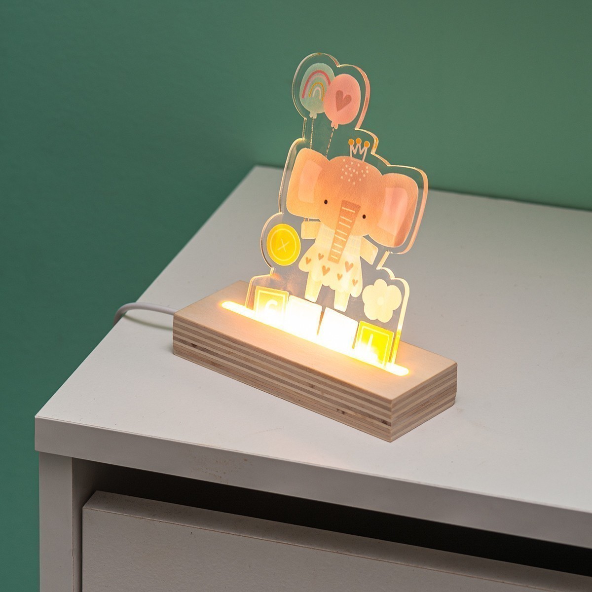 Ξύλινη βάση με Led φωτισμό και καδράκι από διάφανο plexiglass. Η παράσταση απεικονίζει την ελεφαντίνα σε ροζ αποχρώσεις.