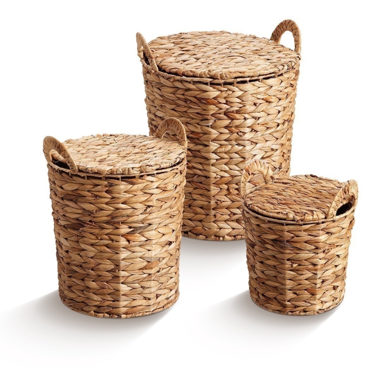 Καλάθια Μπαμπού Καλάθια μπαμπού με καπάκι σετ 3 τεμαχίων. Τα καλάθια έχουν στρογγυλό σχήμα με σταθερή πλέξη και είναι σε χρώμα φυσικό.