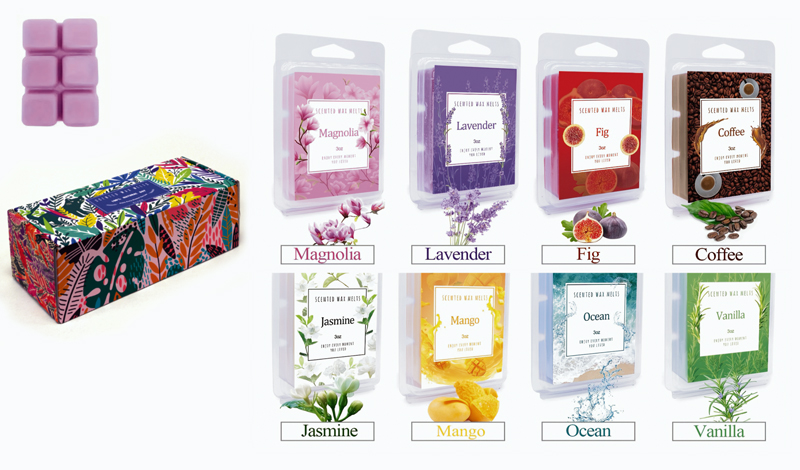 8ΤΕΜ./ΚΟΥΤΙ. Aρώματα: Magnolia, Lavender, Fig, Coffee, Jasmine, Mango, Ocean, Vanilla. Διάσταση: 7.6cm x 5.6cm κάθε μπάρα των 6τεμ.