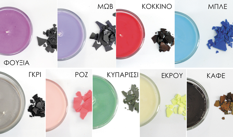 Υψηλής περιεκτικότητας σε χρώμα, αναμιγνύεται εύκολα, κατάλληλη για καύση. Ανακατέψτε στο ζεστό κερί με μεταλλική ράβδο.