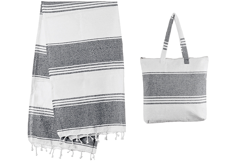 Τουριστικά/Είδη Δώρων | ΣΕΤ ΤΣΑΝΤΑ ΠΑΡΑΛΙΑΣ & ΠΕΤΣΕΤΑ ΒΑΜΒΑΚΕΡΗ FOUTA ΓΚΡΙ ΡΙΓΕ 90X180cm 40X40cm