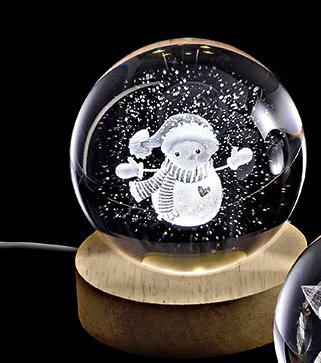 Χριστουγεννιάτικα Διακοσμητικά | ΚΡΥΣΤΑΛΛΙΝΗ ΜΠΑΛΑ ΦΩΤΙΣΤΙΚΟ ΜΕ ΞΥΛΙΝΗ ΒΑΣΗ ΧΙΟΝΑΝΘΡΩΠΟΣ 7cm