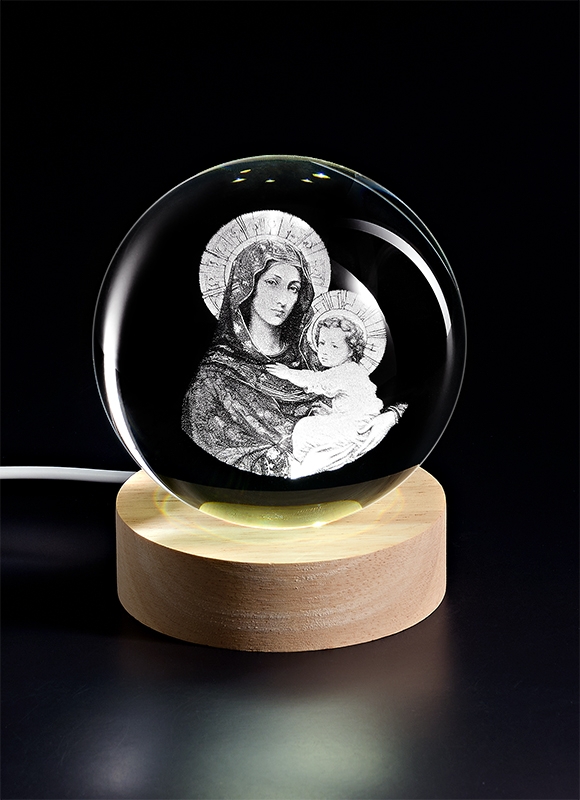 Τουριστικά/Είδη Δώρων | ΚΡΥΣΤΑΛΛΙΝΗ ΜΠΑΛΑ ΦΩΤΙΣΤΙΚΟ ΜΕ ΞΥΛΙΝΗ ΒΑΣΗ ΠΑΝΑΓΙΑ 6cm