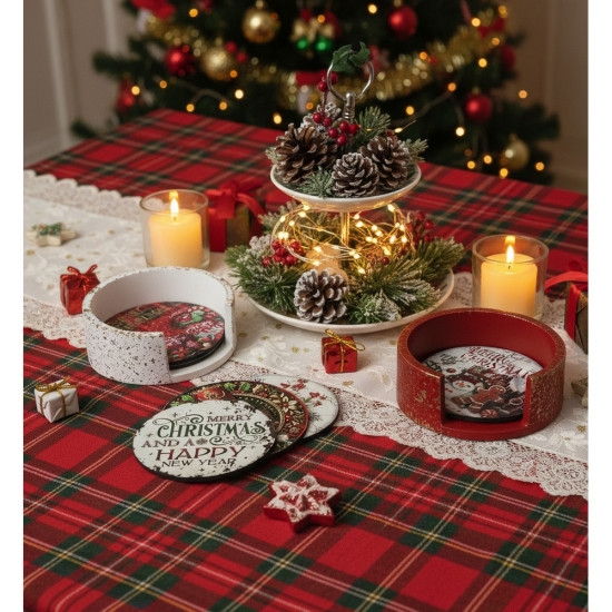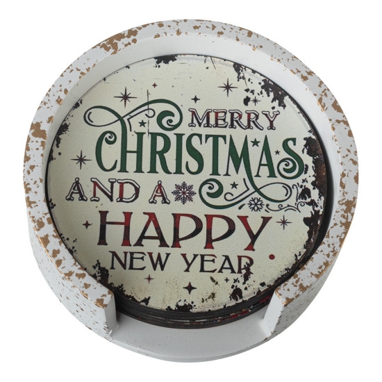 Χριστουγεννιάτικα Διακοσμητικά | Κεραμική Θήκη Σουπλά Λευκή & Ξύλινα Σουβερ Κ979 10εκ
