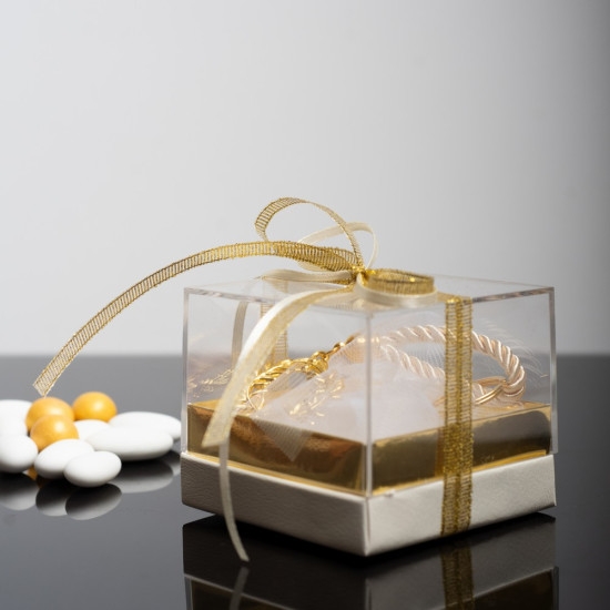 Χάρτινο Πολυτελές Κουτί με plexiglass κατάλληλο για μπομπονιέρες και συσκευασία δώρου. | Διαστάσεις: 8.00εκ x 8.00εκ x 6.00εκ