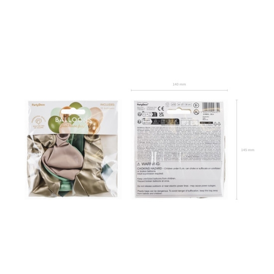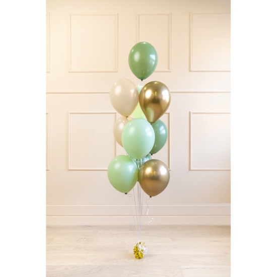 Σετ μπαλόνια λάτεξ, μείγμα χρωμάτων παστέλ (φιστίκι - 3 τμχ, παστέλ πράσινο - 3 τμχ, παστέλ μπεζ - 2 τμχ και γυαλιστερό χρυσό - 2 τμχ),το σετ περιέχει μπαλόνια σε μέγεθος 27 cm και 30 cm. | Διαστάσεις: