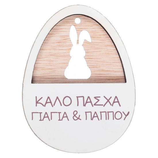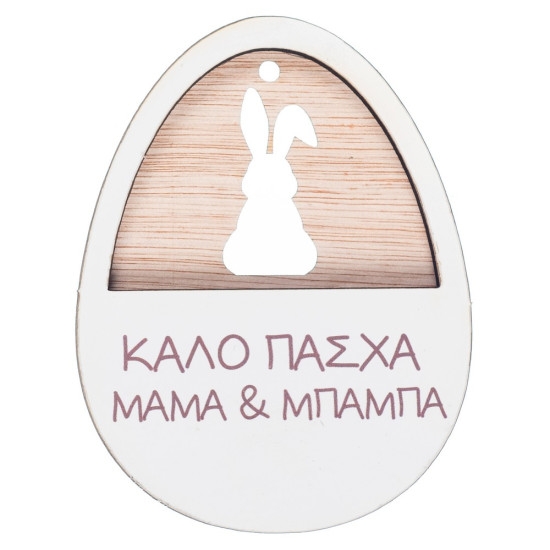 Πασχαλινά Υλικά | Ξύλινο Αυγό Λαγός Ευχές ΝΒ536